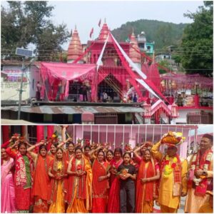 рджреЗрдШрд╛рдЯ рдордВрджрд┐рд░ рдореЗрдВ рд╢реНрд░реАрдорджреН рднрд╛рдЧрд╡рдд рдХрдерд╛ рдХрд╛ рд╢реБрднрд╛рд░рдореНрдн, рдорд╣рд┐рд▓рд╛рдУрдВ рдиреЗ рдирд┐рдХрд╛рд▓реА рдХрд▓рд╢ рдпрд╛рддреНрд░рд╛ред рд╕реНрдпрд╛рд▓реНрджреЗ/рднрд┐рдХрд┐рдпрд╛рд╕реИрдВрдг (рдЕрд▓реНрдореЛрдбрд╝рд╛)ред рджреЗрдШрд╛рдЯ рдордВрджрд┐рд░ рдореЗрдВ рд╢реБрдХреНрд▓ рдкрдХреНрд╖ рдХреЗ рдирд╡рд░рд╛рддреНрд░реЛрдВ рдХреЗ рдкрд╣рд▓реЗ рджрд┐рди