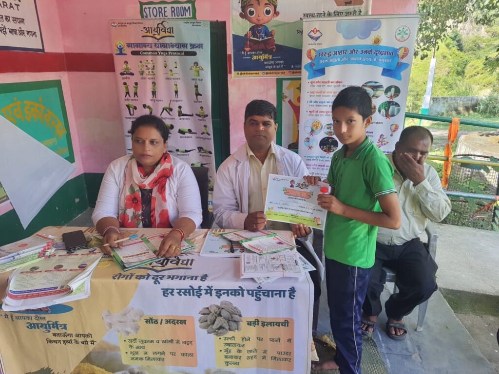 आयुर्वेद मिशन के तहत राजकीय उच्च प्राथमिक विद्यालय जैनल में लगाया गया शिविर।