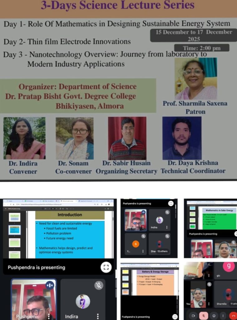 डॉ. प्रताप बिष्ट राजकीय महाविद्यालय भिकियासैंण में ‘सस्टेनेबल टेक्नोलॉजिकल इनोवेशंस’ विषय पर तीन दिवसीय ऑनलाइन व्याख्यानमाला कार्यक्रम हुआ शुरु।