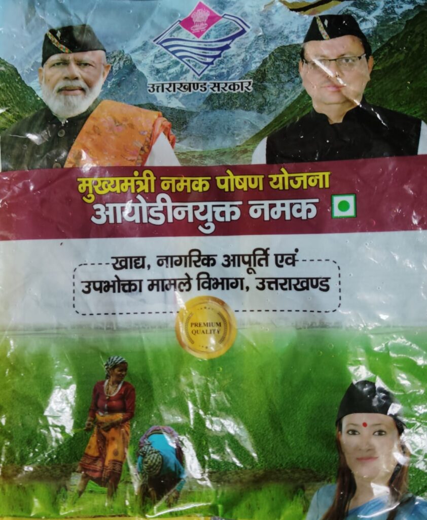 उन्होंने हैरानी व्यक्त करते हुए कहा कि जिस तथाकथित आयोडीन नमक के पैकेट में प्रचार के लिए प्रधानमंत्री नरेन्द्र मोदी, मुख्यमंत्री पुष्कर सिंह धामी व प्रदेश के खाद्य, नागरिक आपूर्ति एवं उपभोक्ता मामलों की मंत्री रेखा आर्य की फोटो लगी हों, ऐसे नमक के पैकेटों में नमक के साथ रेत मिला हों, इससे सहज ही अंदाजा लगाया जा सकता है कि इस प्रदेश में मिलावट का कारोबार कितने धड़ल्ले से चल रहा है।