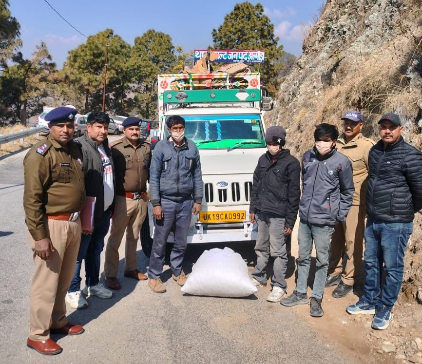 राजकीय आयुर्वेदिक चिकित्सालय के पास कबाड़ से भरी पिकअप वाहन संख्या UK19CA0992 को चेक किया गया। वाहन में सवार 03 युवकों के कब्जे से 18.350 किलोग्राम गांजा बरामद हुआ।