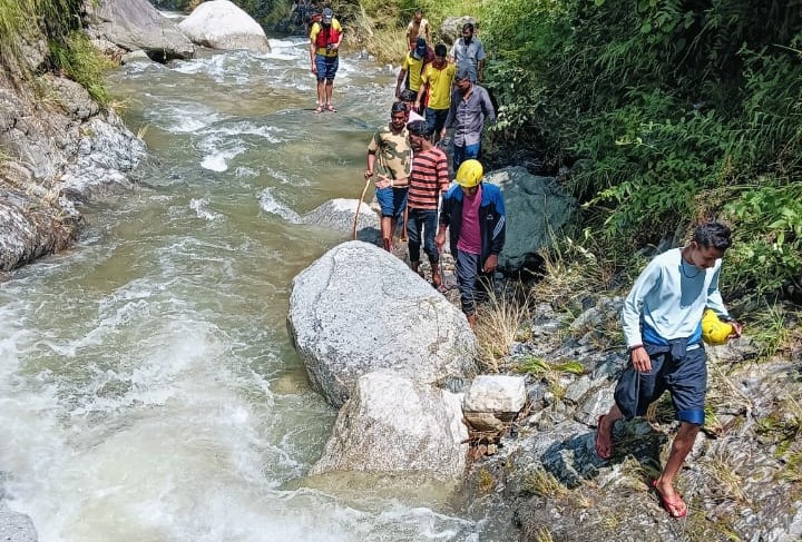 ग्राम खसपड गधेरे में स्कूटी सहित मिला गुमशुदा संजय कुमार टम्टा का शव।
