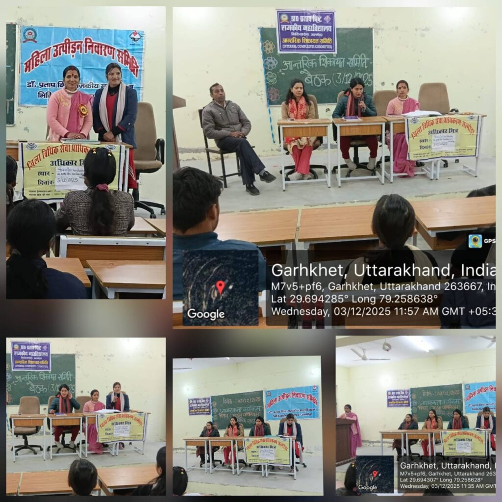 भिकियासैंण (अल्मोड़ा)। डॉ. प्रताप बिष्ट राजकीय महाविद्यालय भिकियासैंण में महाविद्यालय की आंतरिक शिकायत समिति के तत्वावधान में महिला उत्पीड़न से संबंधित बैठक आयोजित की गई। बैठक में समिति के उद्देश्यों पर चर्चा की गई तथा बताया गया कि वर्तमान सत्र में महाविद्यालय में कार्यस्थल पर यौन उत्पीड़न का कोई मामला दर्ज नहीं हुआ है, जो अत्यंत संतोष का विषय है।