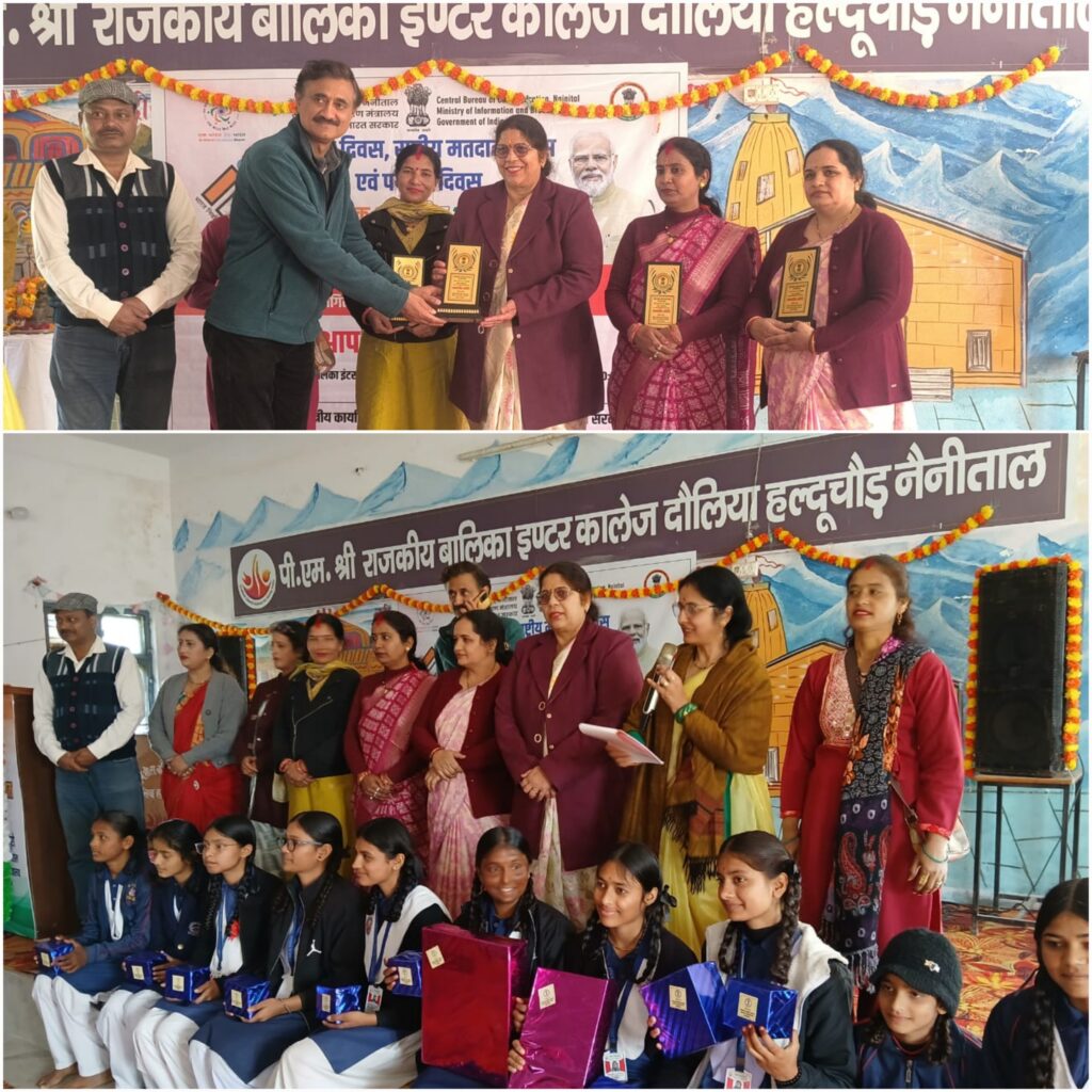 हल्द्वानी (नैनीताल)। पीएम श्री राजकीय बालिका इंटर कॉलेज दौलिया, हल्द्वानी में केंद्रीय संचार ब्यूरो, सूचना एवं प्रसारण मंत्रालय, भारत सरकार द्वारा गणतंत्र दिवस, पर्यटन दिवस, संविधान दिवस एवं मतदान दिवस के अवसर पर एक जागरुकता कार्यक्रम का आयोजन किया गया।