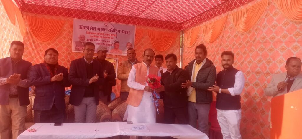मा. सासंद ने कहा कि इस विकसित भारत संकल्प यात्रा के दौरान माननीय प्रधानमंत्री मोदी की गारंटी वाला वाहन हर गांव, हर पंचायत में पहुंच रहा है, जिसका मकसद विकसित भारत का निर्माण करना है। इस यात्रा का संकल्प 2047 तक भारत को हर प्रकार से विकसित करना है, जिसके लिए प्रमुख विभागों द्वारा सभी योजनाओं को जन-जन तक पहुंचाने के लिए मोदी की गारंटी के रुप में यह वाहन हमारे राज्य के कोने-कोने तक पहुंच रहा हैं। विकसित भारत संकल्प यात्रा के अंतर्गत राज्य में 63 हजार से भी अधिक प्रतिभागियों को अभी तक इसमें योजनाओं का लाभ मिल चुका है। विकसित भारत संकल्प यात्रा कार्यक्रम के अंतर्गत उज्ज्वला योजना, आयुष्मान भारत योजना, पीएम विश्वकर्मा योजना, उज्ज्वला योजना, स्वास्थ्य विभाग, बैंक का वित्तीय संस्थान, उद्योग, पीएम विश्वकर्मा, जल जीवन मिशन, कृषि, आधार,खाद्य आपूर्ति, प्रधानमंत्री आवास योजना से वंचित लोगों को इस योजना अंतर्गत योजनाओं से संतृप्त करने का कार्य विकसित भारत संकल्प यात्रा कर रही है। उन्होंने कहा कि लगभग डेढ़ माह तक चलने वाली विकसित भारत संकल्प यात्राओं के जरिए गाँव – गाँव में विभागीय अधिकारी जाकर लोगों की समस्याओं का त्वरित निराकरण कर रहे हैं, उन्होंने बताया कि जनपद अल्मोड़ा में तीन लाख अड़सठ हजार लोगों को फ्री में राशन मिलने लगा हैं ग्यारह हजार लोगों को सौभाग्य योजना से बिजली संयोजन दिया गया है। इसके अलावा एक लाख तीस हजार लोगों को जल जीवन मिशन योजना के तहत पेयजल संयोजन दिए गये हैं। उन्होंने बताया कि साठ हजार किसानों को पीएम किसान सम्मान योजना के अन्तर्गत लाभान्वित किया गया हैं। उन्होंने दन्यां में आधार अपडेशन शिविर चार दिनों तक लगातार लगाने के निर्देश कर्मचारियों को दिये।