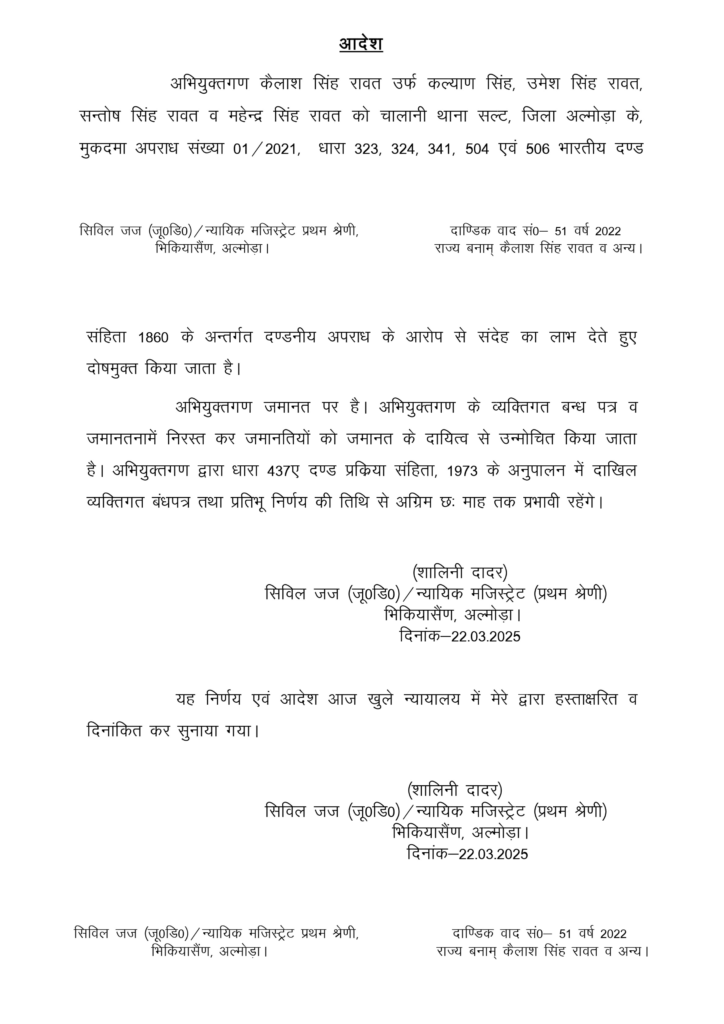 भिकियासैंण न्यायालय ने अपर्याप्त साक्ष्यों के आधार पर चार आरोपियों को किया दोषमुक्त।