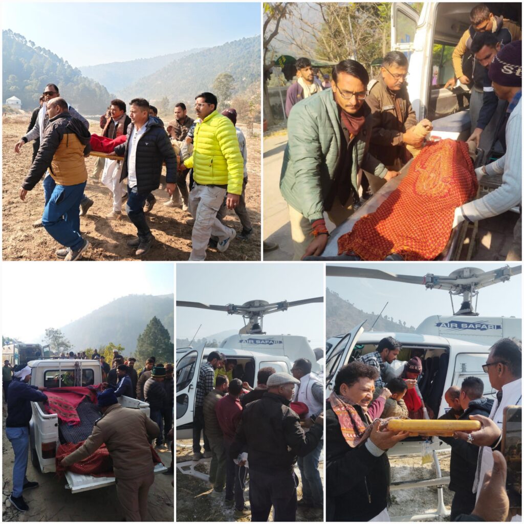 भिकियासैंण (अल्मोड़ा)। द्वाराहाट से भिकियासैंण होते हुए रामनगर जा रही यात्रियों की एक केमू बस संख्या UK07PA4025 आज प्रातः लगभग 07:30 बजे भिकियासैंण–विनायक मोटर मार्ग पर सिरखोन बैंड, शेलापानी क्षेत्र में अनियंत्रित होकर गहरी खाई में गिर गई। इस दर्दनाक सड़क हादसे में 07 लोगों की मौत हो गई, जबकि 12 यात्री घायल हुए हैं। घायलों में से 02 गंभीर रुप से घायल यात्रियों को एयरलिफ्ट कर एम्स ऋषिकेश भेजा गया है।