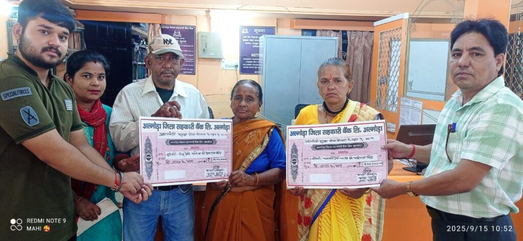 जानकारी के अनुसार प्रधानमंत्री सुरक्षा बीमा योजना के तहत अल्मोड़ा जिला सहकारी बैंक शाखा स्याल्दे द्वारा दो परिवारों को दो-दो लाख रुपए के चेक सोमवार को सौंप कर लाभान्वित किए गए।