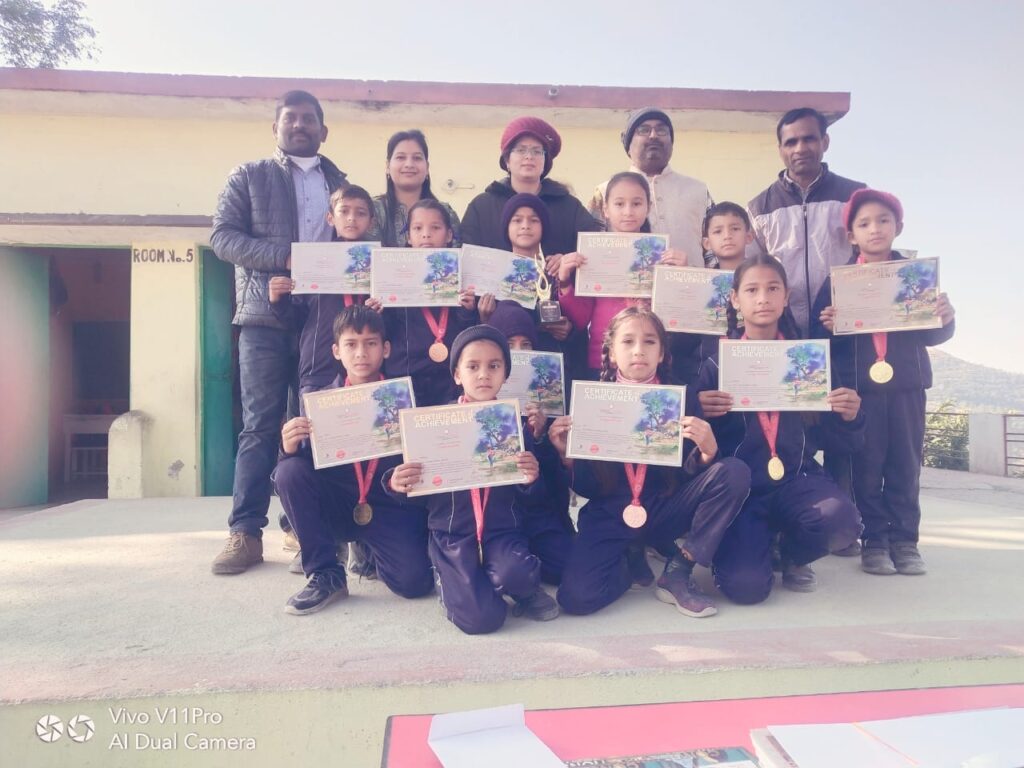 राजकीय आदर्श मानवता विद्यालय देवायल सल्ट में राष्ट्रीय स्तर पर चुने गये बच्चे।