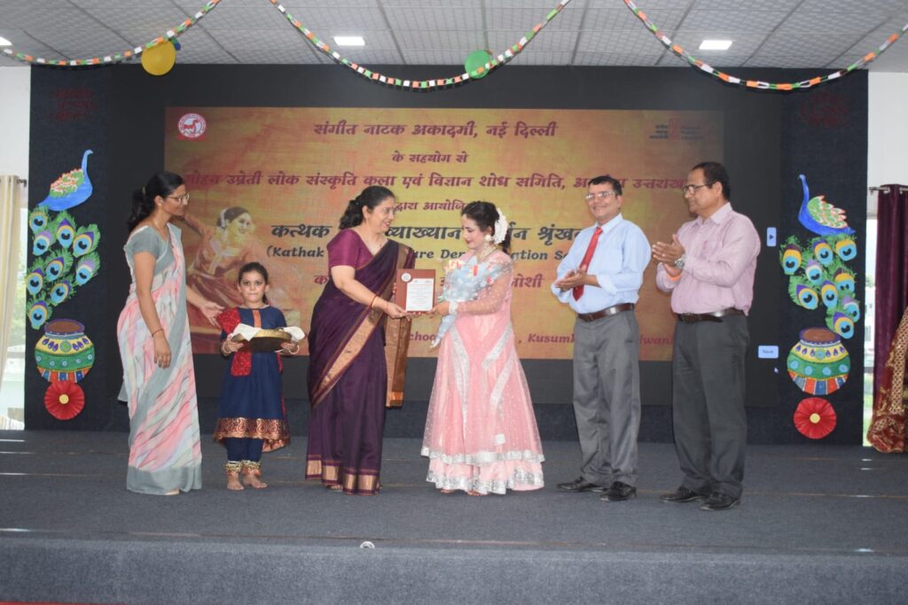 हल्द्वानी। संगीत नाटक अकादमी नई दिल्ली के सहयोग से मोहन उप्रेती लोक संस्कृति कला एवं विज्ञान शोध समिति के तत्वावधान में शनिवार को यूनिवर्सल कॉन्वेंट सीनियर सेकेंडरी स्कूल हल्द्वानी में कत्थक नृत्य व्याख्यान प्रदर्शन का आयोजन किया गया। इस कार्यक्रम में कत्थक नृत्यांगना डॉ. दीपा जोशी ने कत्थक नृत्य की जानकारी दी। कत्थक नृत्य व्याख्यान प्रदर्शन श्रृंखला का प्रारम्भ यूनिवर्सल कॉन्वेंट सीनियर सेकेंडरी स्कूल हल्द्वानी से हुआ। विद्यालय की प्रिंसिपल मंजू जोशी व कत्थक नृत्यांगना डॉ. दीपा जोशी ने संयुक्त रुप से दीप प्रज्वलित कर कार्यक्रम का विधिवत् प्रारम्भ किया।