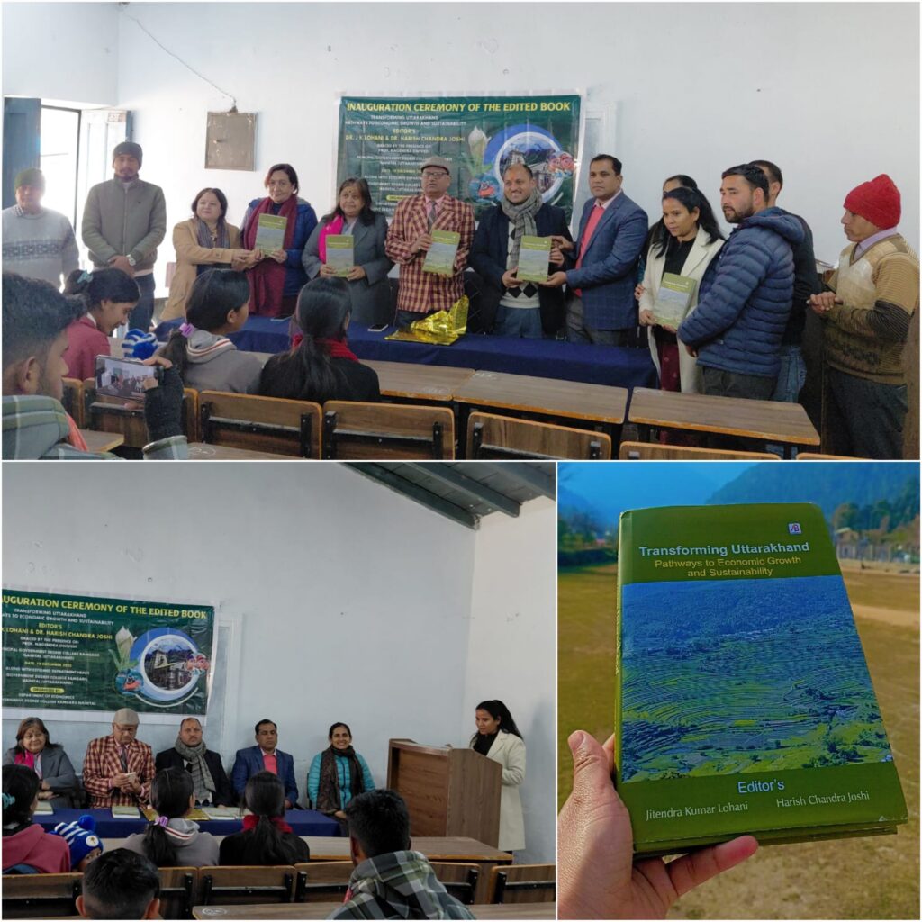 रामगढ़ (नैनीताल)। राजकीय महाविद्यालय रामगढ़ में अर्थशास्त्र के प्राध्यापक डॉ. हरीश चंद्र जोशी द्वारा संपादित पुस्तक “ट्रांसफॉर्मिंग उत्तराखंड: विकास, वृद्धि और सतत विकास का मार्ग” का विमोचन महाविद्यालय के प्राचार्य प्रोफेसर नगेंद्र द्विवेदी द्वारा किया गया।
