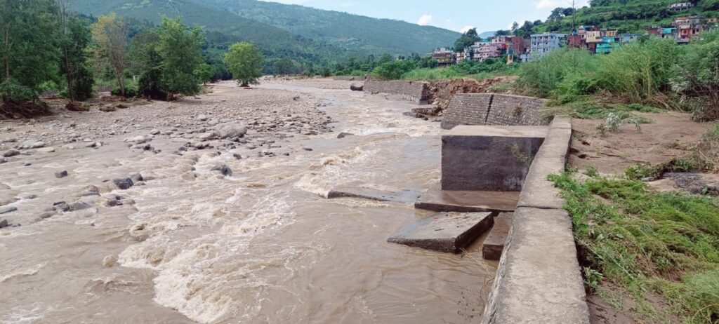 अतिवृष्टि से देघाट क्षेत्र के घरों मे घुसा पानी, एक किलोमीटर लम्बी विद्युत लाईन टूटने से विद्युत सप्लाई ठप्प।