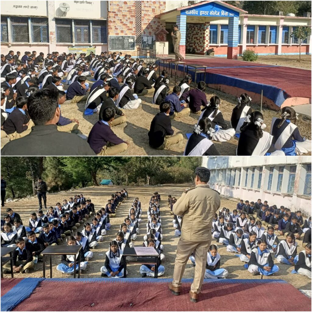 इसी क्रम में अपर पुलिस अधीक्षक अल्मोड़ा हरबन्स सिंह एवं सीओ रानीखेत विमल प्रसाद के पर्यवेक्षण में प्रभारी निरीक्षक कोतवाली द्वाराहाट विनोद जोशी के नेतृत्व में राजकीय इंटर कॉलेज बिन्ता में बच्चों को सुरक्षित, सजग एवं जिम्मेदार नागरिक बनाने के उद्देश्य से उपनिरीक्षक धरम सिंह द्वारा पुलिस टीम के साथ जागरुकता अभियान चलाया गया।