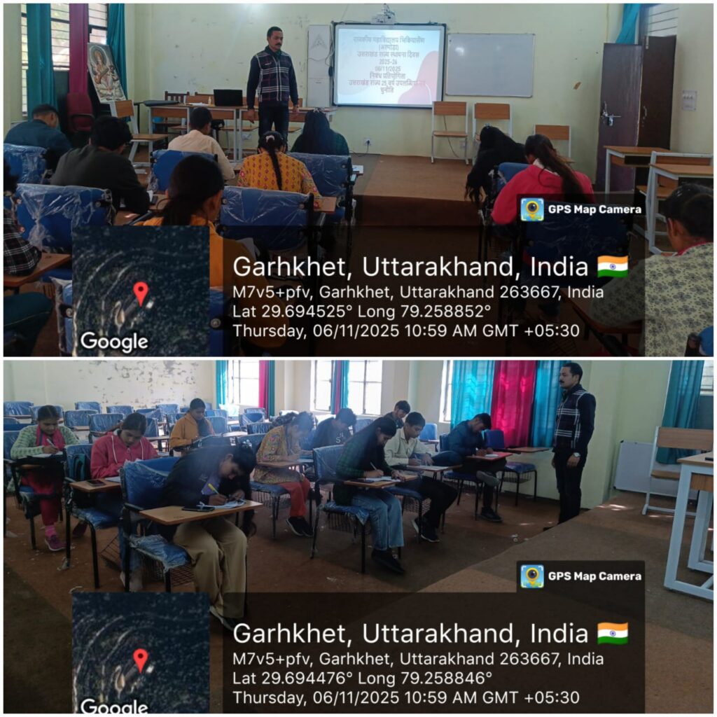 भिकियासैंण (अल्मोड़ा)। डॉ. प्रताप बिष्ट राजकीय महाविद्यालय भिकियासैंण में आज उत्तराखंड राज्य के 25वें स्थापना दिवस रजत जयंती के उपलक्ष्य में “उत्तराखंड राज्य 25 वर्ष — उपलब्धियां एवं चुनौतियां” विषय पर निबंध प्रतियोगिता का आयोजन किया गया।