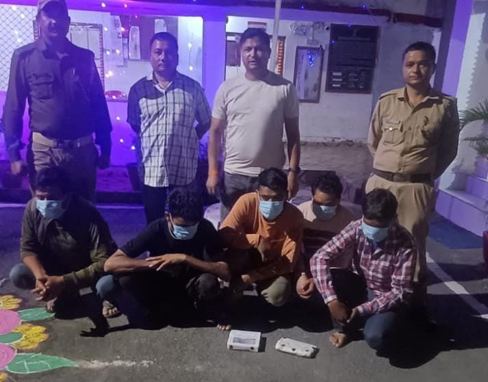दिनाँक 22 अक्टूबर 2025 को प्रभारी निरीक्षक कालाढूंगी अरुण सैनी के नेतृत्व में पुलिस टीम द्वारा नौदा चौराहा, कोटाबाग क्षेत्र में दबिश देकर सार्वजनिक स्थान पर हार-जीत की बाजी लगाकर जुआ खेलते हुए पाँच अभियुक्तों को मौके से गिरफ्तार किया गया, जबकि दो अभियुक्त मौके से फरार हो गए।