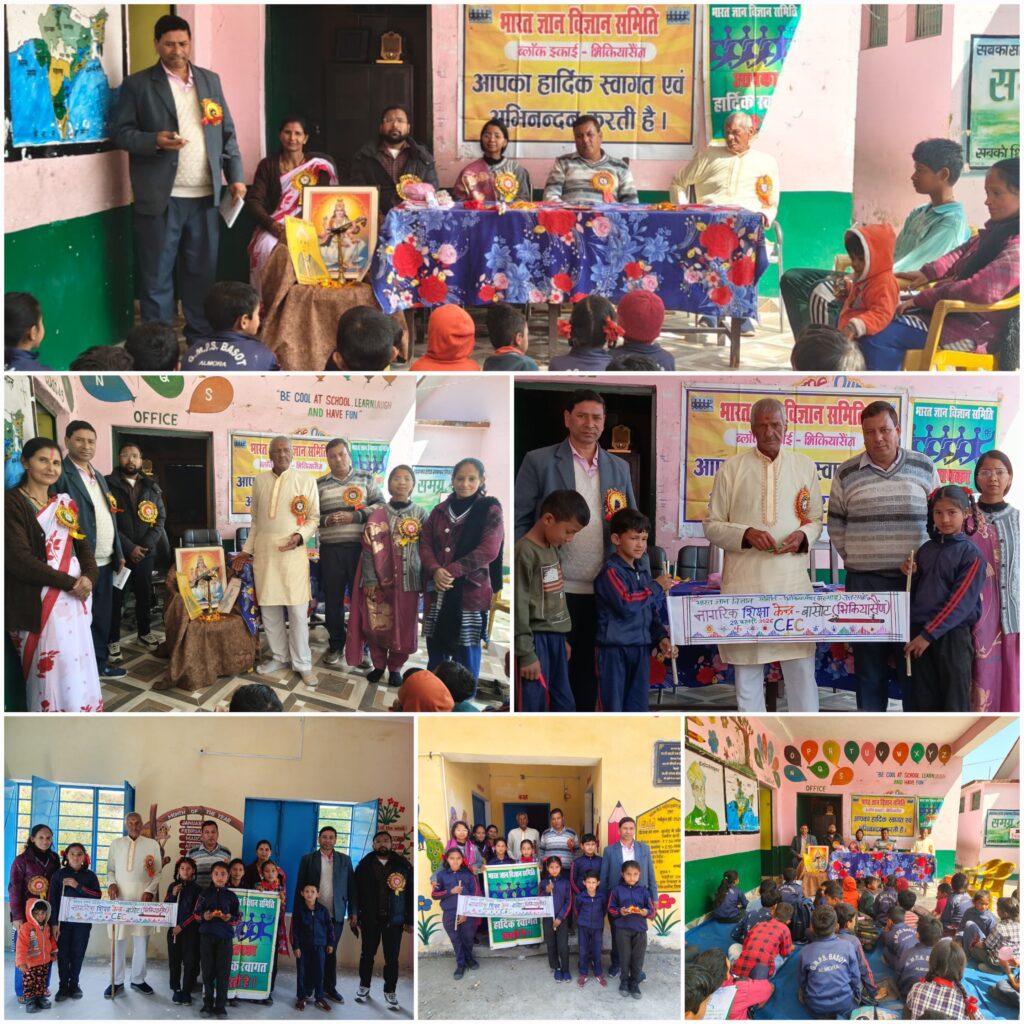 भिकियासैंण (अल्मोड़ा)। भारत ज्ञान विज्ञान समिति भिकियासैंण के तत्वावधान में नागरिक शिक्षा केन्द्र बासोट का विधिवत उद्घाटन किया गया। उद्घाटन अवसर पर रा.आ.प्रा.वि. बासोट, आर.सी.एम. पब्लिक स्कूल बासोट तथा रा.उ.मा.वि. बासोट के बाल वैज्ञानिकों ने राष्ट्रीय विज्ञान दिवस के उपलक्ष्य में छोटे-छोटे विज्ञान प्रयोग प्रस्तुत किए। इस अवसर पर महान भौतिक विज्ञानी सी. वी. रमन को विज्ञान के क्षेत्र में उनके उल्लेखनीय योगदान के लिए स्मरण किया गया।