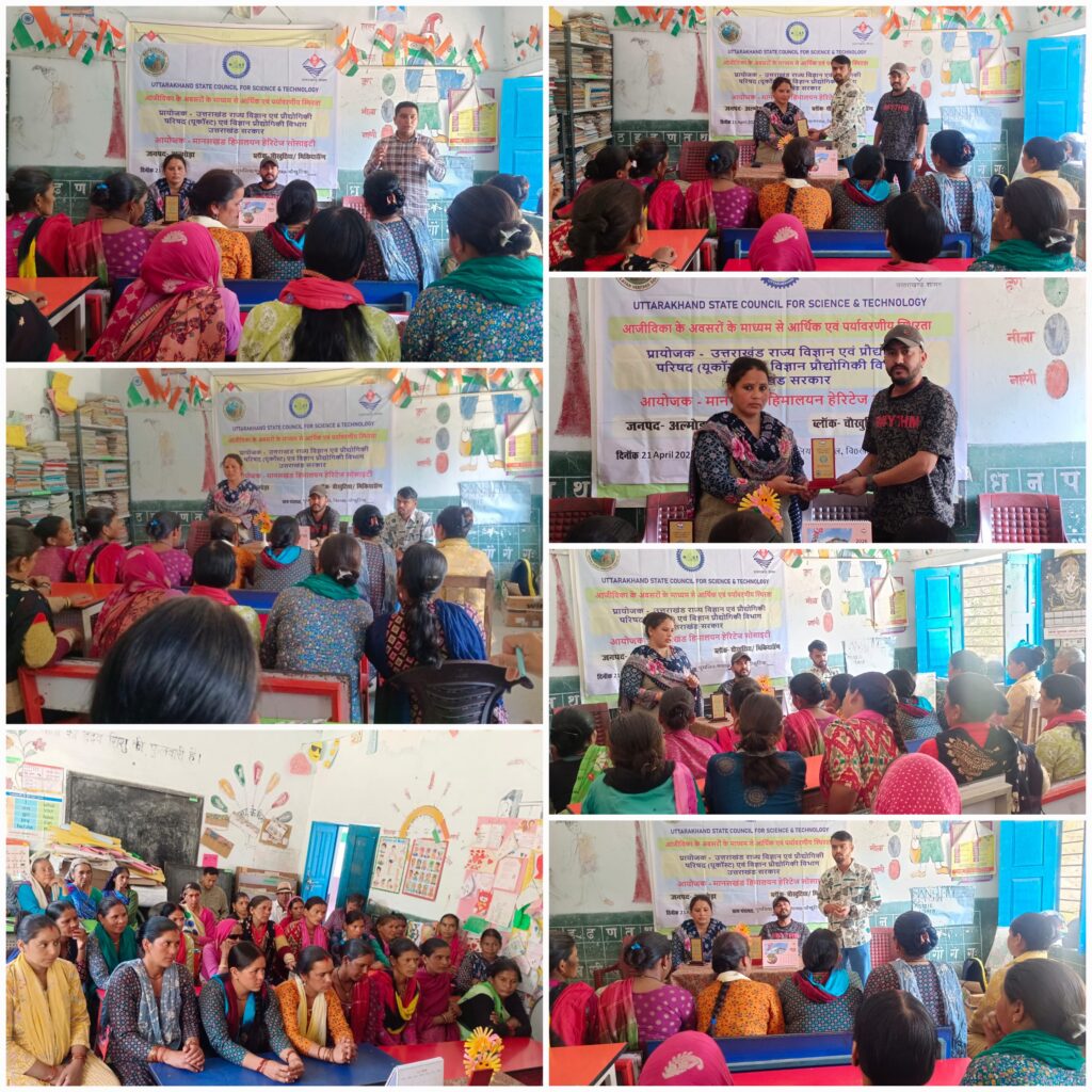 चौखुटिया (अल्मोड़ा)। विकासखंड चौखुटिया के ग्राम पंचायत धुधलिया मनराल महिलाओं के आर्थिक सशक्तिकरण एवं आजीविका संवर्धन के उद्देश्य से “आजीविका के अवसरों के माध्यम से आर्थिक एवं पर्यावरणीय स्थिरता” विषय पर एक कार्यशाला का सफल आयोजन किया गया। यह कार्यक्रम उत्तराखंड राज्य विज्ञान एवं प्रौद्योगिकी परिषद (यूकोस्ट) एवं मानसखंड हिमालयन हेरिटेज सोसाइटी के संयुक्त तत्वावधान में संपन्न हुआ।