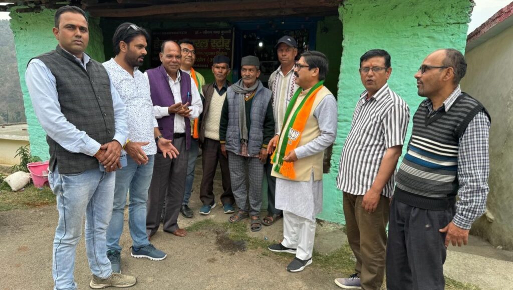 भिकियासैंण/रानीखेत। माननीय अध्यक्ष राज्य सलाहकार श्रम संविदा बोर्ड कैलाश पंत द्वारा भाजपा के कार्यकर्ताओं के साथ रानीखेत विधानसभा के जैना, गुमटा, जालीखान, बिल्लेख, लोधियखान, मुसोली, बयेडी, बल्याली, चापड़, भुजान, तिपौला, बगवान, बिसालकोट, हल्द्वानी, मंडलकोट, नौघर, शिसुवा, लछिना, मनारी, नावली आदि गांवों का भ्रमण कर मोदी सरकार द्वारा जनकल्याण के लिए चलाई जा रही योजनाओं के जानकरी देने के साथ ही सांसद प्रत्याशी अजय टम्टा को भारी मतों से जिताने के लिए वोट मांगे।