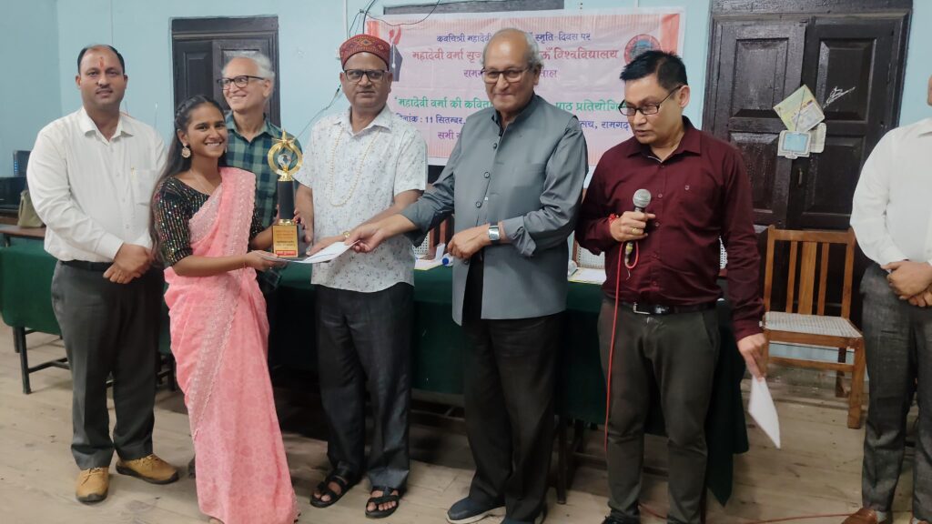 भवाली/रामगढ़। कवयित्री महादेवी वर्मा के 38वें स्मृति-दिवस पर कुमांऊ विश्वविद्यालय की महादेवी वर्मा सृजन पीठ द्वारा राजकीय महाविद्यालय रामगढ़ में महादेवी वर्मा की कविताओं की सस्वर-पाठ प्रतियोगिता एवं संगोष्ठी का आयोजन किया गया।