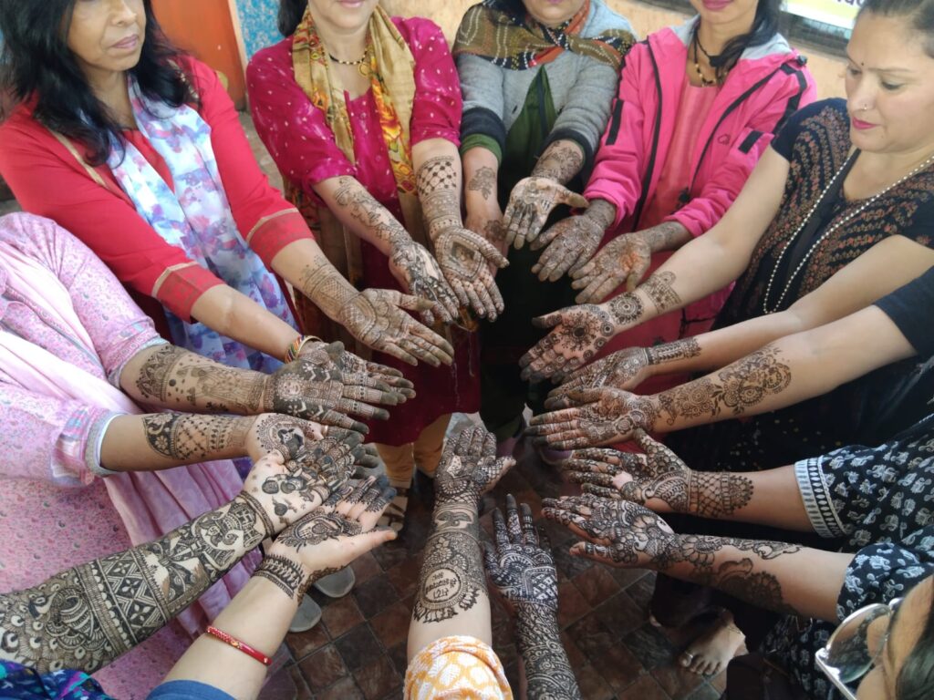 अल्मोड़ा नगर में जिलाधिकारी आलोक कुमार पांडेय की पहल पर हुई मेहंदी प्रतियोगिता, नगर की महिलाओं ने बढ़-चढ़कर समूह की महिलाओं से लगवाई मेहंदी।