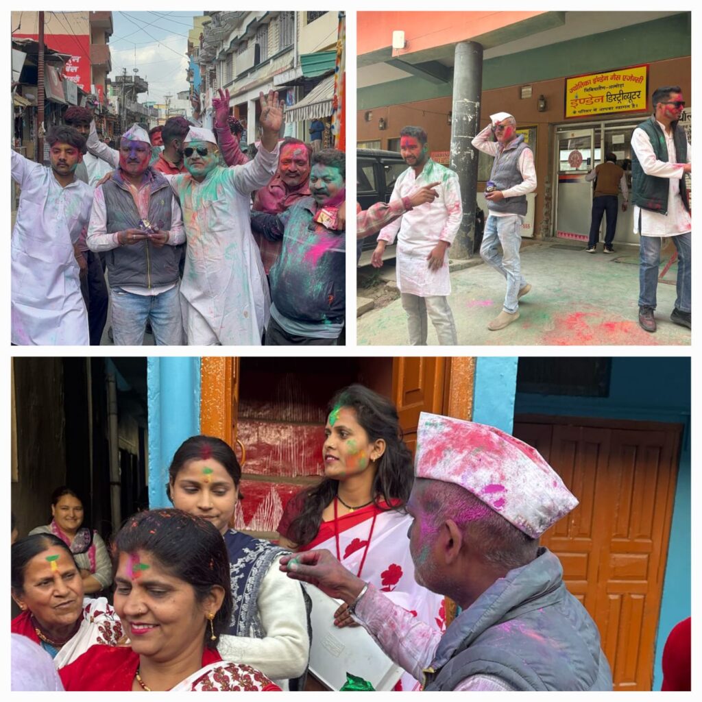 नगर पंचायत भिकियासैंण में महिला व पुरुषों ने शांतिपूर्ण ढंग से किया होली मिलन।