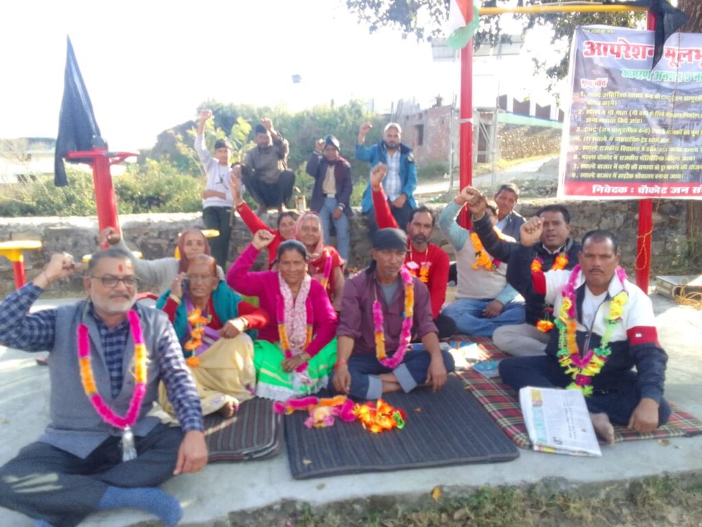 स्याल्दे/भिकियासैंण (अल्मोड़ा)। विकासखंड चौकोट जन सेवा संघर्ष समिति के बैनर तले चल रहा आंदोलन आज 23वें दिन में प्रवेश कर गया। समिति की आठ सूत्रीय मांगों को लेकर आंदोलन लगातार जारी है। इसी क्रम में आमरण अनशन पर बैठे राजेंद्र सिंह का आज सातवां दिन रहा, जिनकी स्वास्थ्य स्थिति लगातार कमजोर होती जा रही है।