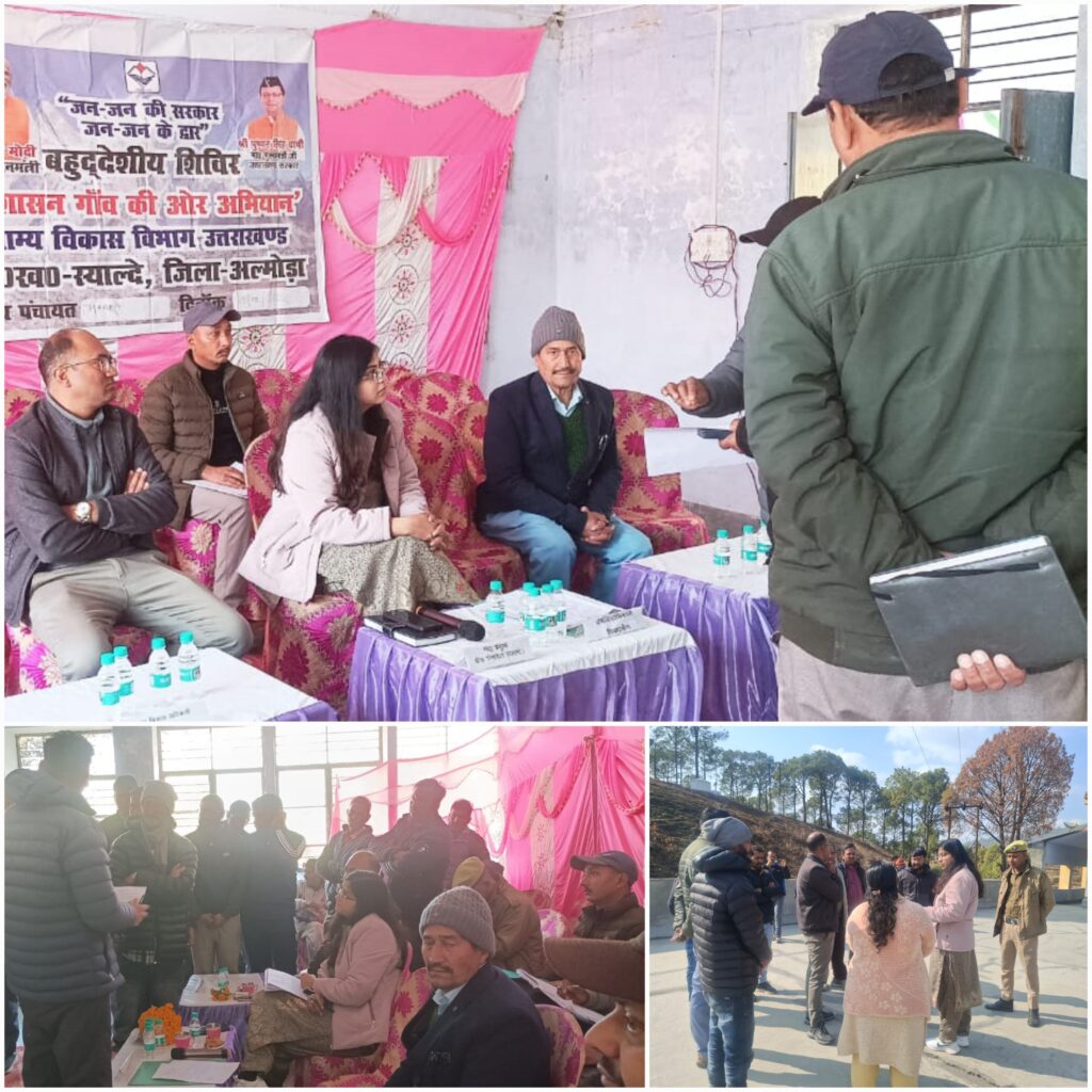 स्याल्दे/भिकियासैंण (अल्मोड़ा)। ‘जन-जन की सरकार, जन-जन के द्वार’ कार्यक्रम के अंतर्गत विकासखंड स्याल्दे की न्याय पंचायत महंग्यारी में बहुउद्देशीय शिविर का आयोजन किया गया। शिविर में विभिन्न विभागों के अधिकारियों एवं कर्मचारियों द्वारा आमजन की समस्याओं का समाधान करते हुए उन्हें सरकारी योजनाओं की जानकारी एवं लाभ प्रदान किया गया।