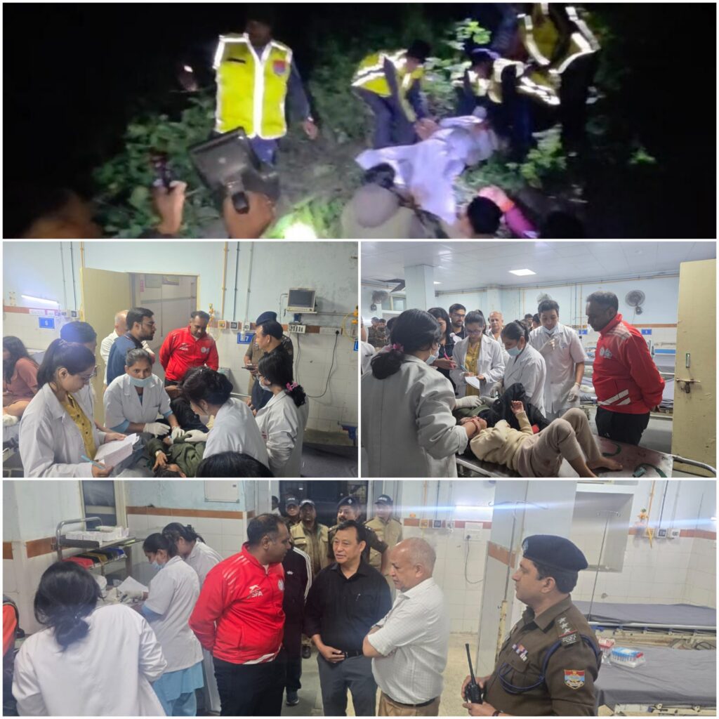 नैनीताल। दिनाँक 01 नवम्बर 2025 को रात्रि 10:47 बजे डायल 112 से सूचना प्राप्त हुई कि आमपड़ाव के पास एक टेंपो ट्रैवलर सड़क से नीचे खाई में गिर गया है।
