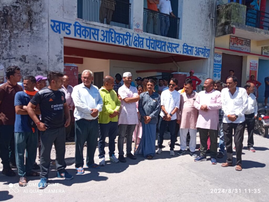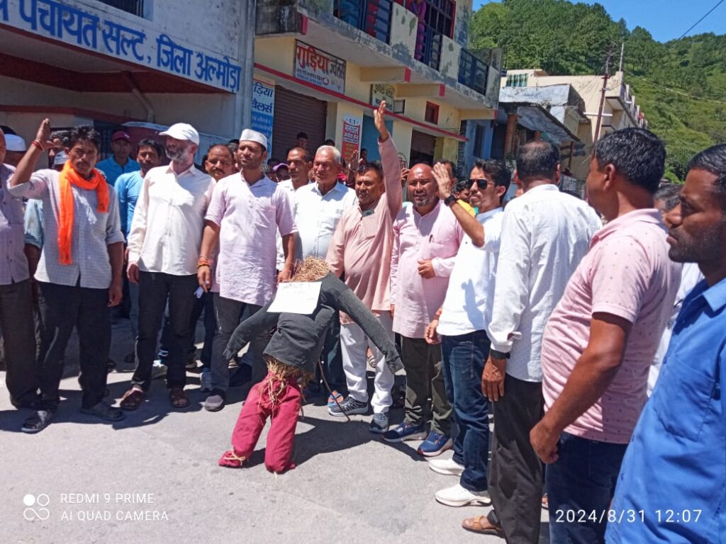 आरोपी को गिरफ्तार करने को लेकर सल्ट में लोगों ने किया जबरदस्त प्रदर्शन।