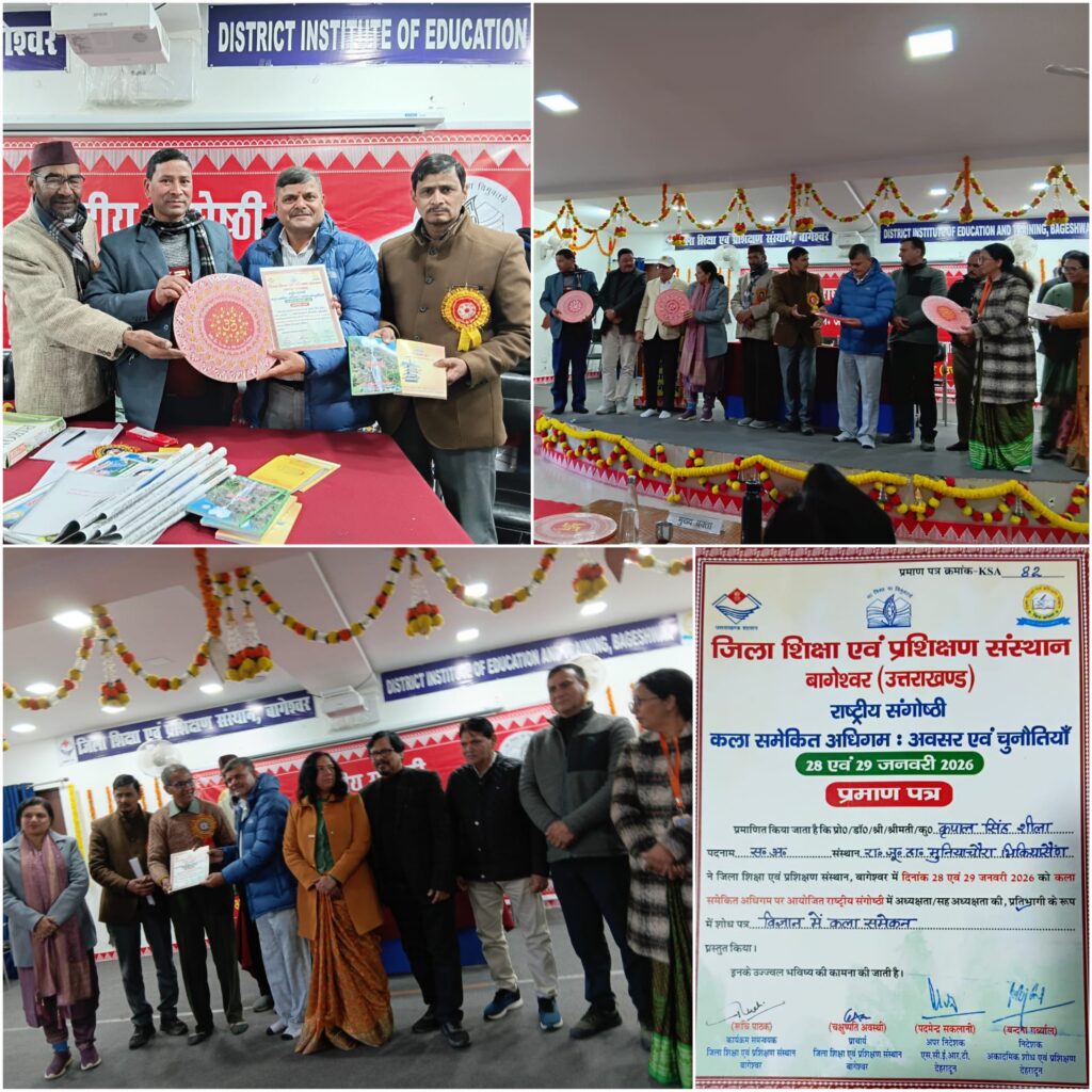 बागेश्वर। जिला शिक्षा एवं प्रशिक्षण संस्थान बागेश्वर में “कला समेकित अधिगम : अवसर व चुनौतियाँ” विषय पर आयोजित दो दिवसीय राष्ट्रीय संगोष्ठी में सहायक अध्यापक विज्ञान कृपाल सिंह शीला द्वारा “विज्ञान में कला समेकन” विषय पर अपना शोध आलेख प्रस्तुत किया गया।