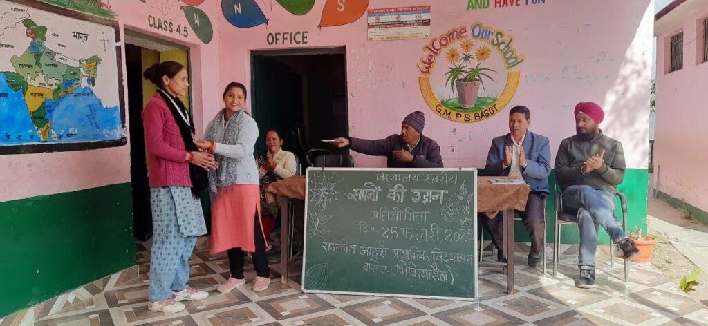 भिकियासैंण। राजकीय आदर्श प्राथमिक विद्यालय बासोट में सपनों की उड़ान की विविध प्रतियोगिताएं आयोजित की गई। सपनों की उड़ान प्रतियोगिता के संबंध में विद्यालय के प्रधानाध्यापक दयाशंकर गिरी द्वारा विस्तार से अभिभावकों व बच्चों को जानकारी दी गई। सपनों की उड़ान प्रतियोगिता में कुर्सी दौड़ में नीमा प्रथम व सरिता देवी द्वितीय रही। नींबू दौड़ प्रतियोगिता में सरिता देवी प्रथम व अनीता देवी ने द्वितीय स्थान प्राप्त किया। बच्चों के लोकगीत व लोकनृत्य में कामना, हर्षिता, खुशी, निशा ने प्रथम स्थान प्राप्त किया। नाटक प्रतियोगिता में जानवी, कामना, अमित, भगीरथ, दीपिका, प्रिन्स ने प्रथम स्थान प्राप्त किया।