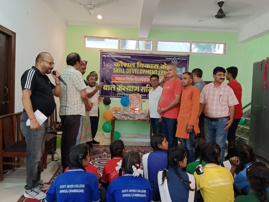 रामनगर (नैनीताल)। बाल कल्याण समिति द्वारा विद्यालय के विद्यार्थियों हेतु ढिकुली में कौशल विकास केंद्र का शुभारंभ किया गया। बाल कल्याण समिति ढिकुली के अध्यक्ष इंजी. ललित मोहन छिमवाल ने अपने जन्म दिवस के अवसर पर कौशल विकास केंद्र की स्थापना कर एक सराहनीय पहल की, और बच्चों को यह नायाब तोहफा दिया। उन्होंने अपने नवनिर्मित भवन के हॉल में स्थापित इस कौशल विकास केंद्र में विद्यार्थियों हेतु कंप्यूटर शिक्षा, योग, गायन, नृत्य, सिलाई, बुनाई, पेंटिंग, संगीत आदि विधाओं के प्रशिक्षण की व्यवस्था इस कौशल विकास केंद्र में की है। बच्चों के निशुल्क प्रशिक्षण की व्यवस्था बाल कल्याण समिति ढिकुली की ओर से की जाएगी।