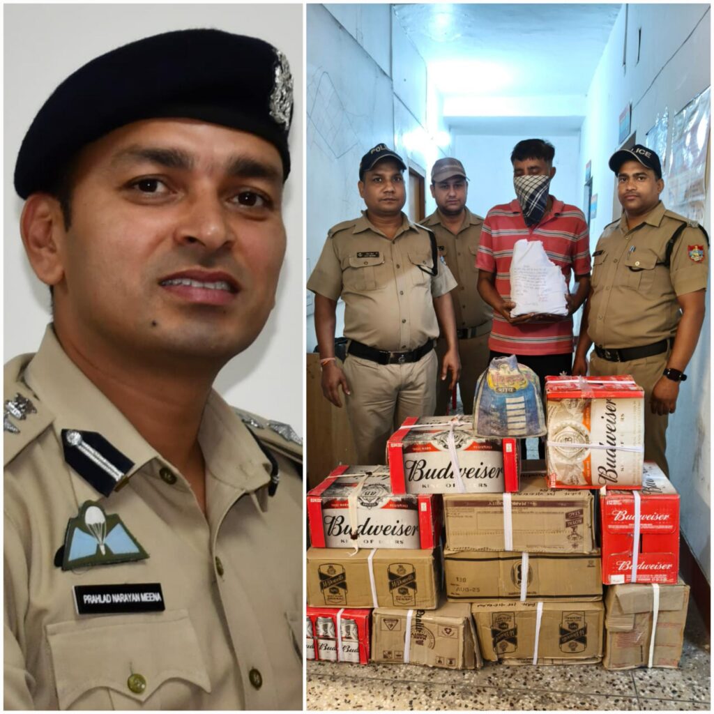 चेकिंग के दौरान गन्ना सेंटर से आगे झलक बार के पास, नीम करौली प्रॉपर्टीज के समीप से एक व्यक्ति नवीन कुमार सिंह को कुल 11 पेटी अवैध शराब के साथ गिरफ्तार किया गया।