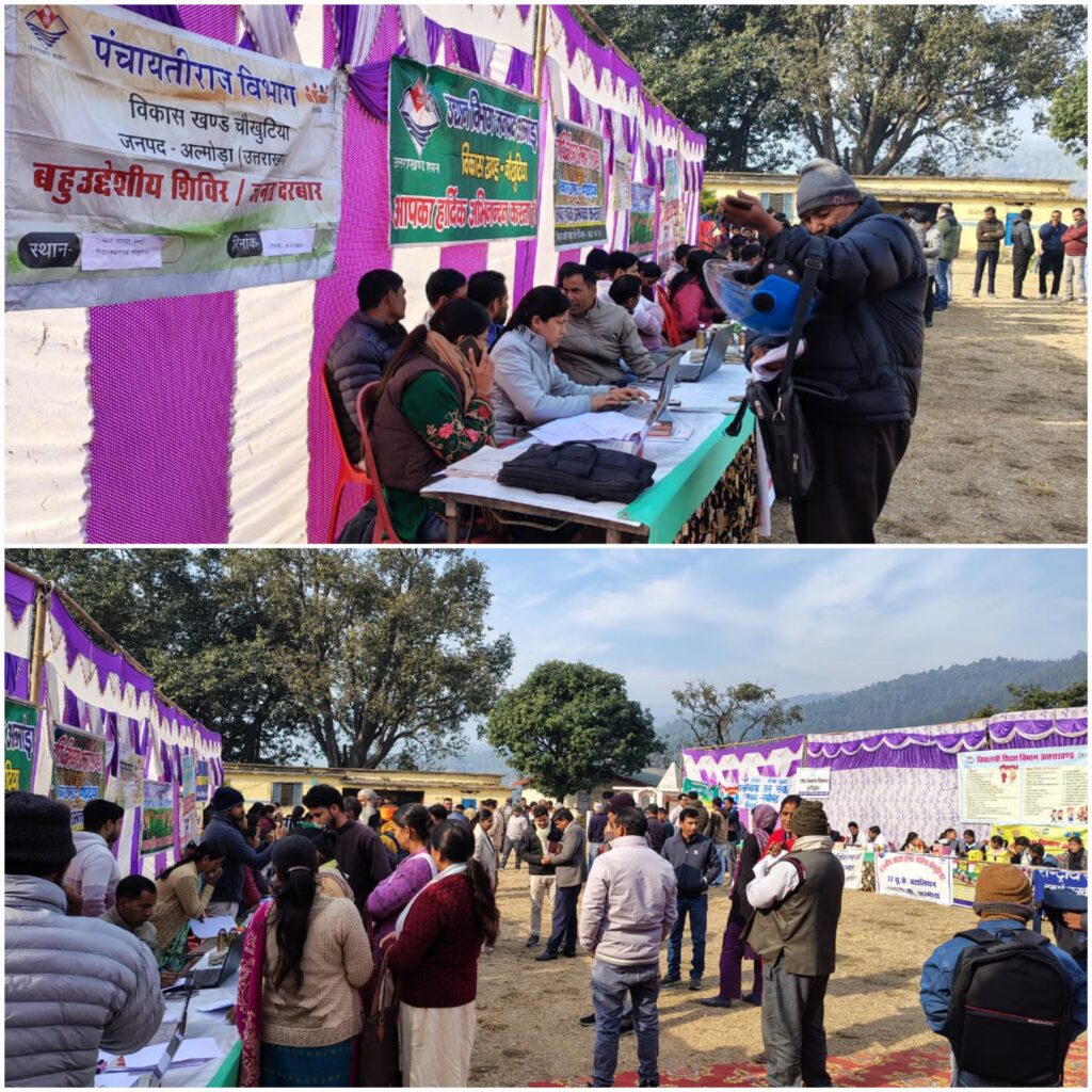 इसी क्रम में विकासखंड भिकियासैंण की न्याय पंचायत सिनौड़ा तथा विकासखंड चौखुटिया की न्याय पंचायत गनाई में बहुउद्देशीय शिविरों का आयोजन किया गया। शिविरों में विभिन्न विभागों द्वारा स्टॉल लगाकर योजनाओं की जानकारी दी गई और प्राप्त शिकायतों का मौके पर ही निस्तारण किया गया।