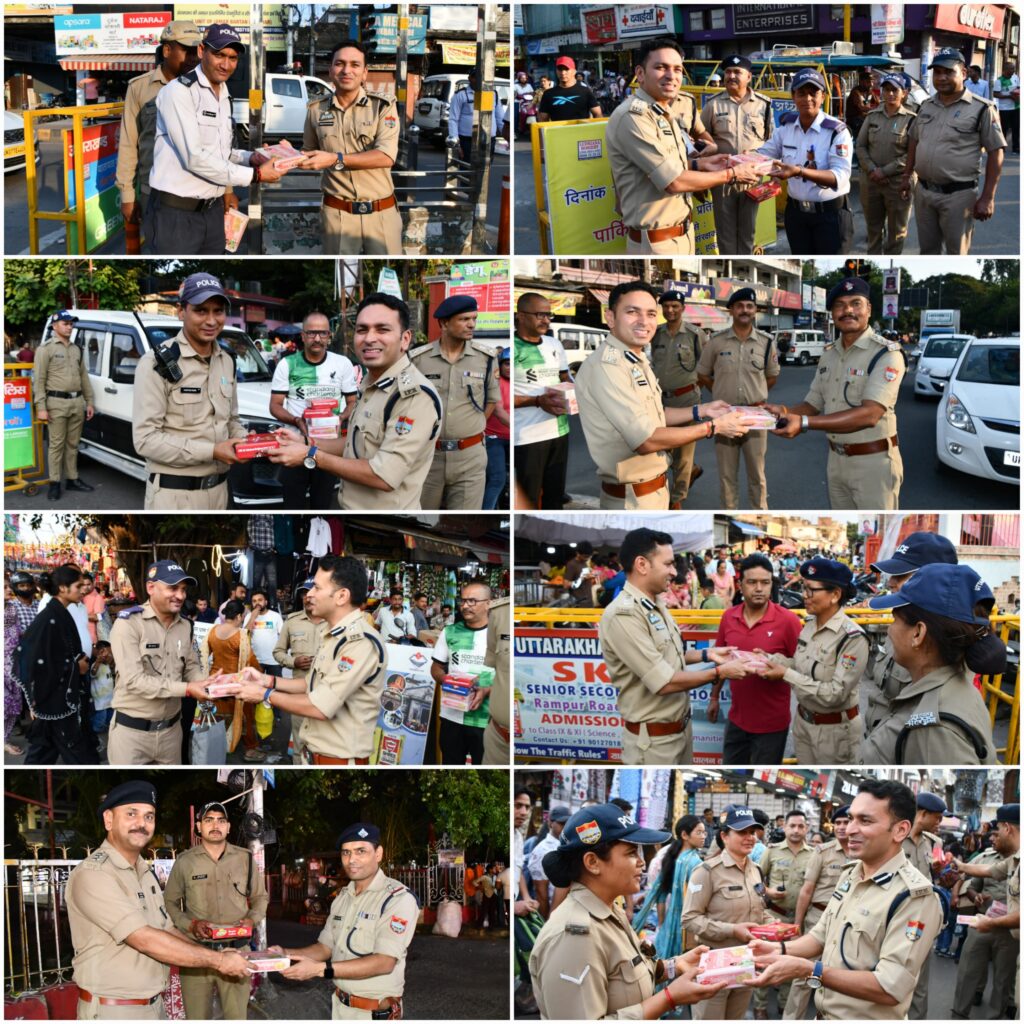 उन्होंने पुलिस लाइन हल्द्वानी से लेकर शहर के मुख्य बाजार, रोडवेज स्टेशन, ओके होटल, ताज चौराहा, फल मंडी, कैंसर तिराहा, आईटीआई तिराहा, मुखानी चौराहा, लालडांठ तिराहा, सेंट्रल हॉस्पिटल तिराहा, कुसुमखेड़ा तिराहा, बीरशिवा तिराहा, तिकोनिया सहित विभिन्न ड्यूटी प्वाइंटों का निरीक्षण किया और तैनात पुलिसकर्मियों को मिठाई और शुभकामनाएं दी। एसएसपी ने जवानों से त्योहार की स्थिति और सुरक्षा व्यवस्था को लेकर जानकारी भी ली तथा अच्छी ड्यूटी के लिए उनकी हौसला-अफजाई की।