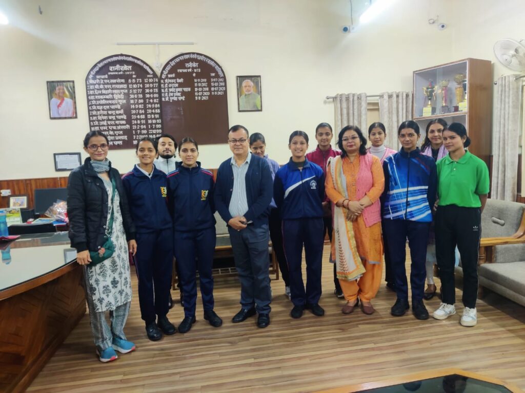 रानीखेत (अल्मोड़ा)। राजकीय स्नातकोत्तर महाविद्यालय रानीखेत में “छात्र पुलिस अनुभवात्मक अधिगम कार्यक्रम” के अंतर्गत एनएसएस के दस छात्र-छात्राओं द्वारा 1 माह का प्रशिक्षण प्राप्त करने पर प्राचार्य प्रोफेसर पुष्पेश पांडे व एनएसएस कार्यक्रम अधिकारी डॉ. पारुल भारद्वाज व डॉ. कमला ने एनएसएस स्वयंसेवियों को शुभकामनाएं दी, व उनका उत्साहवर्धन किया। एक माह के प्रशिक्षण के बाद स्वयंसेवियो ने प्राचार्य से भेंट की व अपना अनुभव साझा किया।