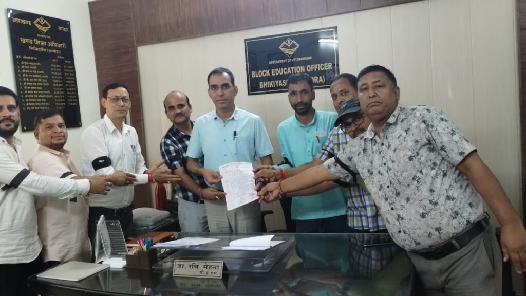 भिकियासैंण। शिक्षक संघ भिकियासैंण के सभी सदस्य आज विद्यालयों में प्रधानाचार्य की सीधी भर्ती के विरोध में चॉक डाउन हड़ताल पर रहे। विद्यालय में उपस्थित शिक्षकों ने राजकीय शिक्षक संघ की प्रान्तीय कार्यकारिणी के आह्वान पर चरण बद्ध तरीके से आंदोलन का बिगुल फूंक दिया है। सभी शिक्षकों ने प्रथम दिन सांकेतिक रुप से चॉक डाउन हड़ताल पर जाकर कक्षाओं का बहिष्कार किया। सरकार पदोन्नति से भरे जाने वाले प्रधानाचार्य के पचास प्रतिशत पदों को सीधी भर्ती से भरने के लिए विज्ञप्ति जारी कर चुकी है, जिसकी परीक्षा आगामी 29 सितम्बर को प्रस्तावित है।