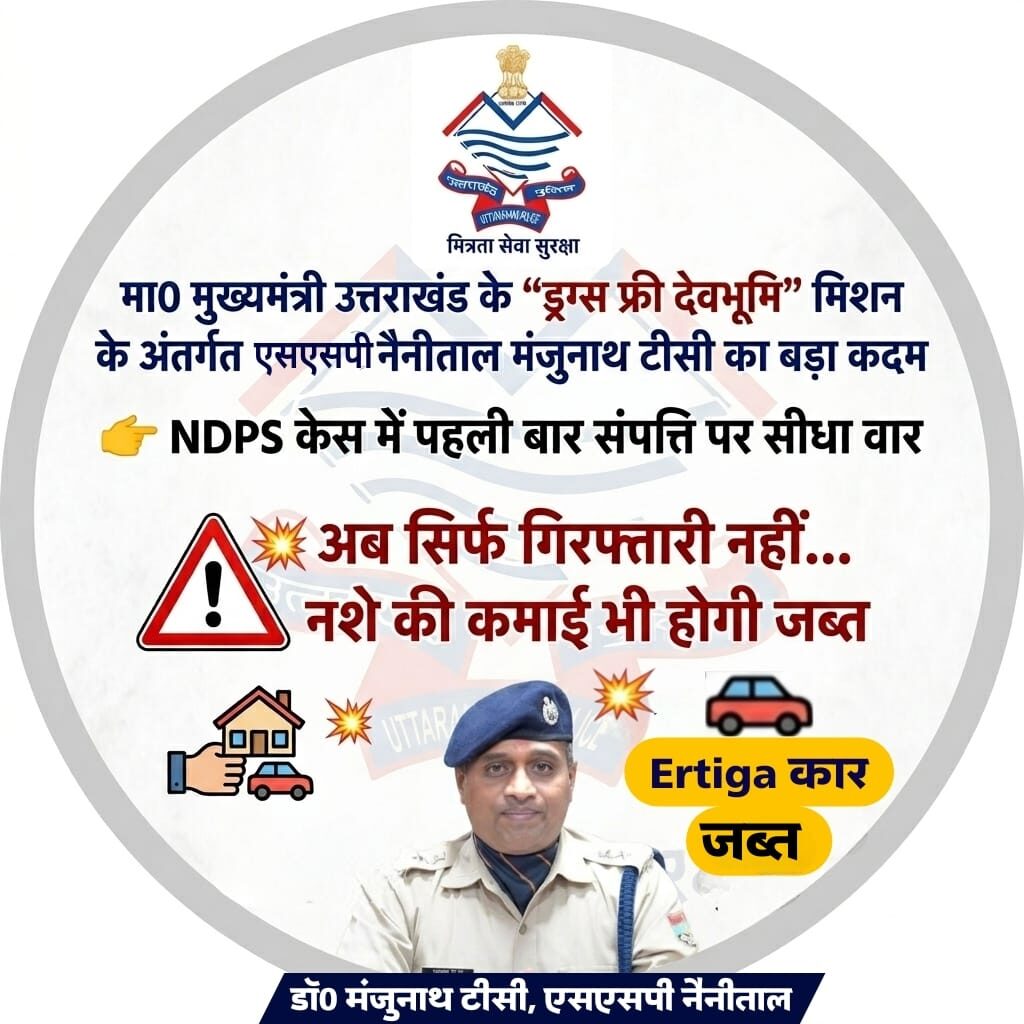 एनडीपीएस अभियोग में अवैध संपत्ति पर कार्रवाई, वाहन जब्त; एसएसपी नैनीताल के निर्देश पर सख्त कदम।