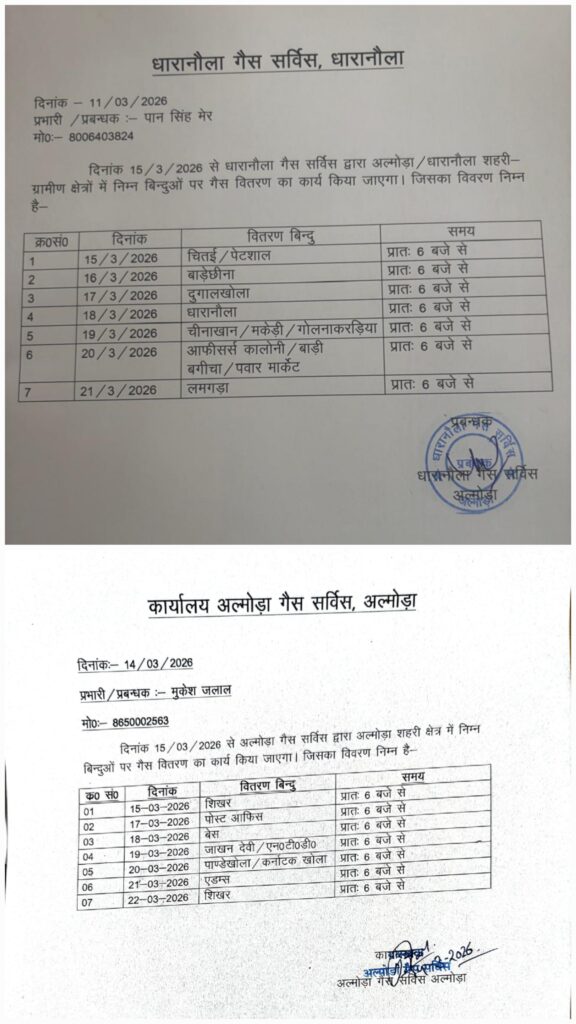 अल्मोड़ा। जनपद में गैस आपूर्ति व्यवस्था को सुचारु बनाए रखने के उद्देश्य से जिलाधिकारी अंशुल सिंह ने आवश्यक निर्देश जारी किए हैं। जारी आदेश के अनुसार वर्तमान वैश्विक परिस्थितियों के कारण गैस एजेंसियों में पर्याप्त मात्रा में गैस सिलेंडर उपलब्ध होने के बावजूद ऑनलाइन बुकिंग, आईवीआरएस और ओटीपी के माध्यम से गैस प्राप्त करने की प्रक्रिया प्रभावित हो रही है। इसके चलते उपभोक्ताओं को गैस प्राप्त करने में कठिनाई हो रही है तथा एजेंसियों में भीड़ की स्थिति उत्पन्न हो रही है।