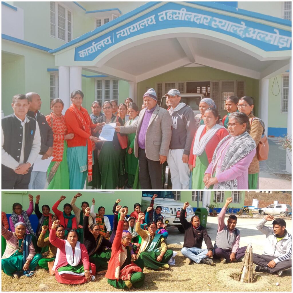 स्याल्दे (अल्मोड़ा)। प्रगतिशील भोजन माता यूनियन उत्तराखण्ड की ब्लॉक इकाई स्याल्दे के बैनर तले भोजन माताओं ने अपनी 11 सूत्रीय मांगों को लेकर स्याल्दे मुख्यालय बाजार से तहसील कार्यालय तक जुलूस निकालकर प्रदर्शन किया तथा तहसील कार्यालय के समक्ष धरना दिया। इस दौरान तहसीलदार के माध्यम से मुख्यमंत्री को ज्ञापन प्रेषित किया गया।