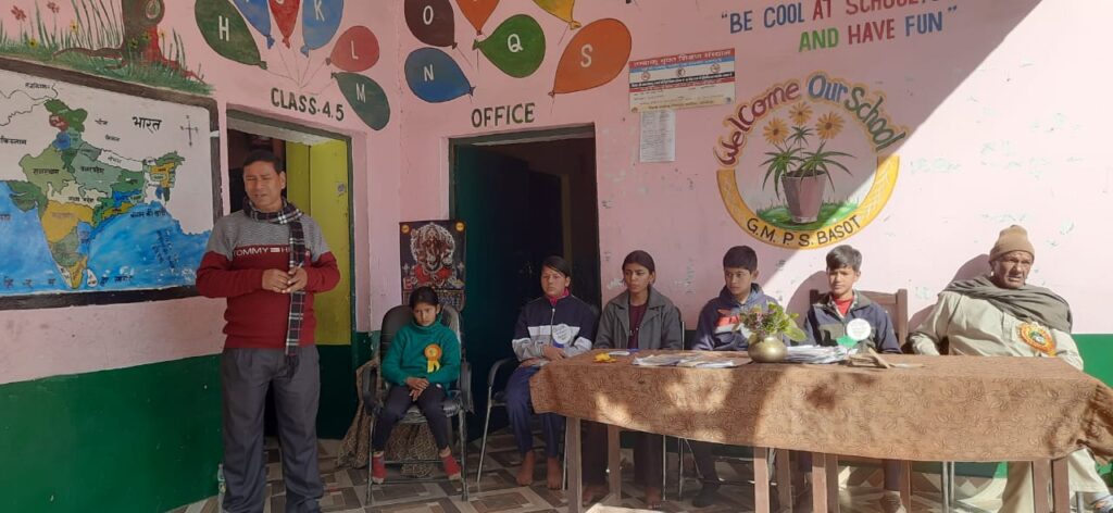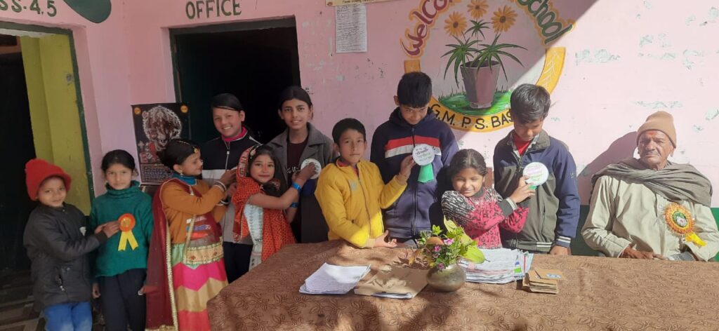 भिकियासैंण (अल्मोड़ा)। आदर्श प्राथमिक विद्यालय बासोट में प्रारंभिक स्तर के बच्चों का पाँच दिवसीय शीतकालीन कार्यशाला (विंटर कैम्प) के पंचम दिवस पर बच्चों ने विविध खेल गतिविधियों में हिस्सा लिया। पंचम दिवस की कार्यशाला के अवसर पर बच्चों ने सर्वप्रथम बिल्ली-चूहा खेल खेलकर चूहे के साथियों ने चूहे को बिल्ली से बचाने का प्रयास किया। उसके बाद मानसिक खेल हाथ को सुल्टा-उल्टा करके सफेद काला खेल व बोल मेरी मछली कितना पानी का खेल खेला। इसके साथ ही बच्चों ने कबड्डी भी खेली।