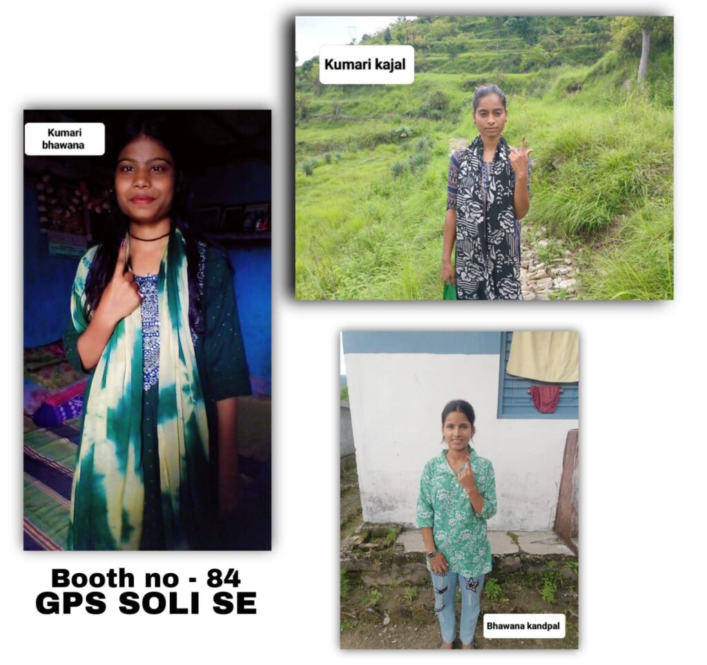 इस दौरान मतदान केंद्र सोली में तीन बालिका कुमारी भावना, कुमारी काजल व कुमारी भावना कांडपाल ने पहली बार मतदान किया, जो काफी खुश नजर आए। वहीं बूथ सोली में मोहन राम 82 वर्ष व नैनीसेरा निवासी बाल्ती देवी टम्टा 88 वर्षीय बुजुर्ग महिला ने गंगोड़ा बूथ में लाठी के सहारे आकर मतदान किया।