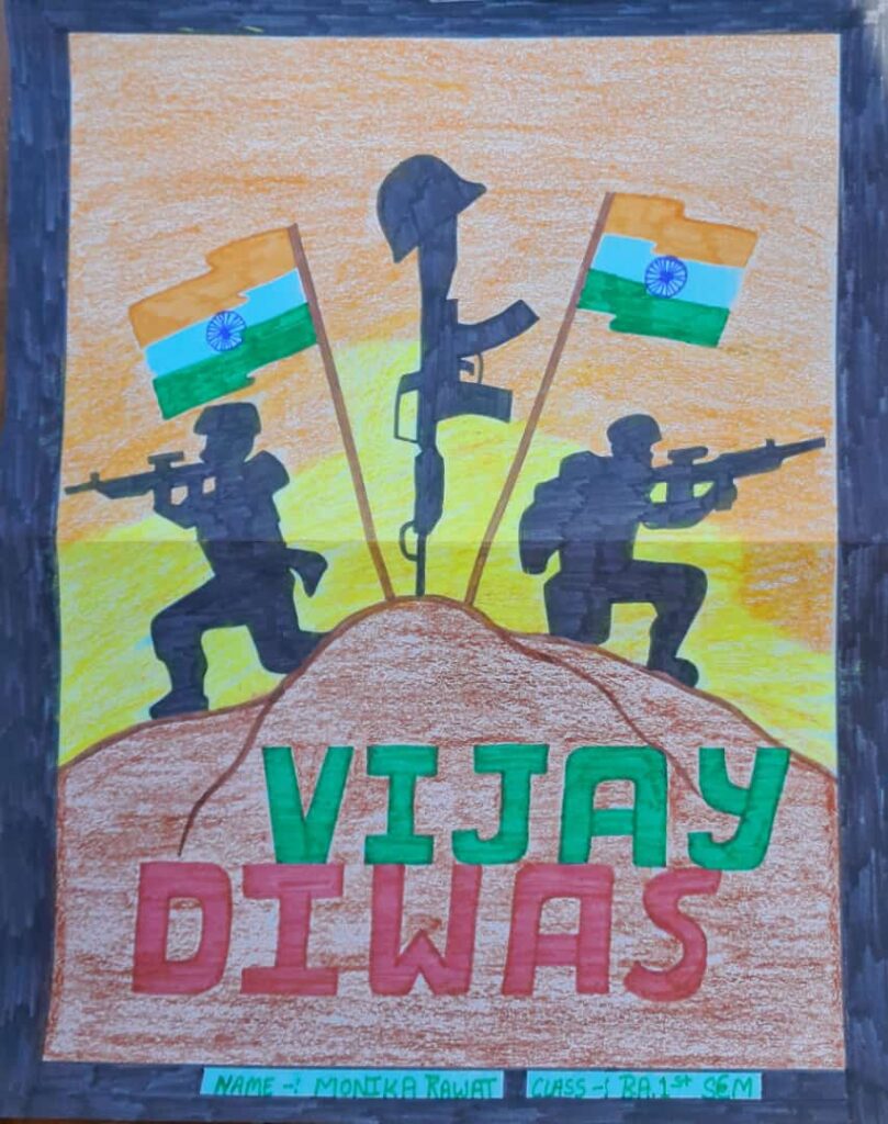 भिकियासैंण (अल्मोड़ा) डॉ. प्रताप बिष्ट राजकीय महाविद्यालय भिकियासैंण में विजय दिवस मनाया गया। इस अवसर पर 1971 के भारत और पाकिस्तान युद्ध में देश के वीर जवानों की शहादत को याद करते हुए श्रद्धांजलि अर्पित की गई।कार्यक्रम का शुभारंभ प्रभारी प्राचार्य डॉ. रजनी शर्मा द्वारा किया गया। महाविद्यालय के प्राध्यापक डॉ. दयाकृष्ण ने छात्र – छात्राओं को विजय दिवस के इतिहास से अवगत कराया। डॉ. दीपा लोहनी एवं डॉ. साबिर हुसैन ने विजय दिवस के ऐतिहासिक महत्व पर विस्तृत प्रकाश डाला।