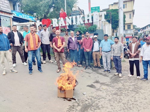 रानीखेत में विश्व हिंदू परिषद ने खानपुर विधायक का नारेबाजी के साथ किया पुतला दहन।