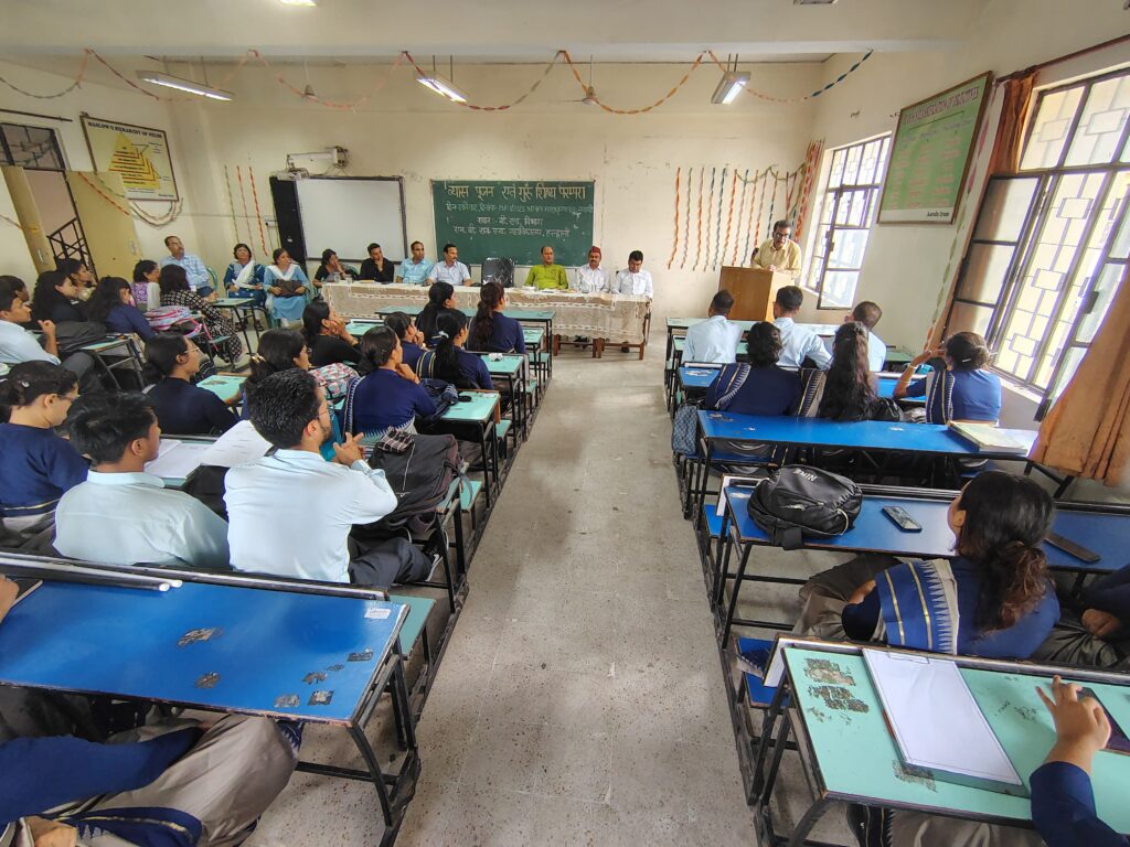मुख्य वक्ता डॉ. बृजेश बनकोटी (सहप्रांत प्रचार प्रमुख, राष्ट्रीय स्वयंसेवक संघ, उत्तराखंड प्रांत) ने गुरु-शिष्य परंपरा की ऐतिहासिक और सांस्कृतिक विरासत पर अपने विचार प्रकट किए। कार्यक्रम के मुख्य अतिथि प्रो. के. के. पाण्डेय निदेशक, उच्च शिक्षा हल्द्वानी ने वेदों और महर्षि वेदव्यास द्वारा प्रतिपादित परंपराओं का उल्लेख करते हुए गुरु-शिष्य संबंध का गूढ़ विश्लेषण प्रस्तुत किया।