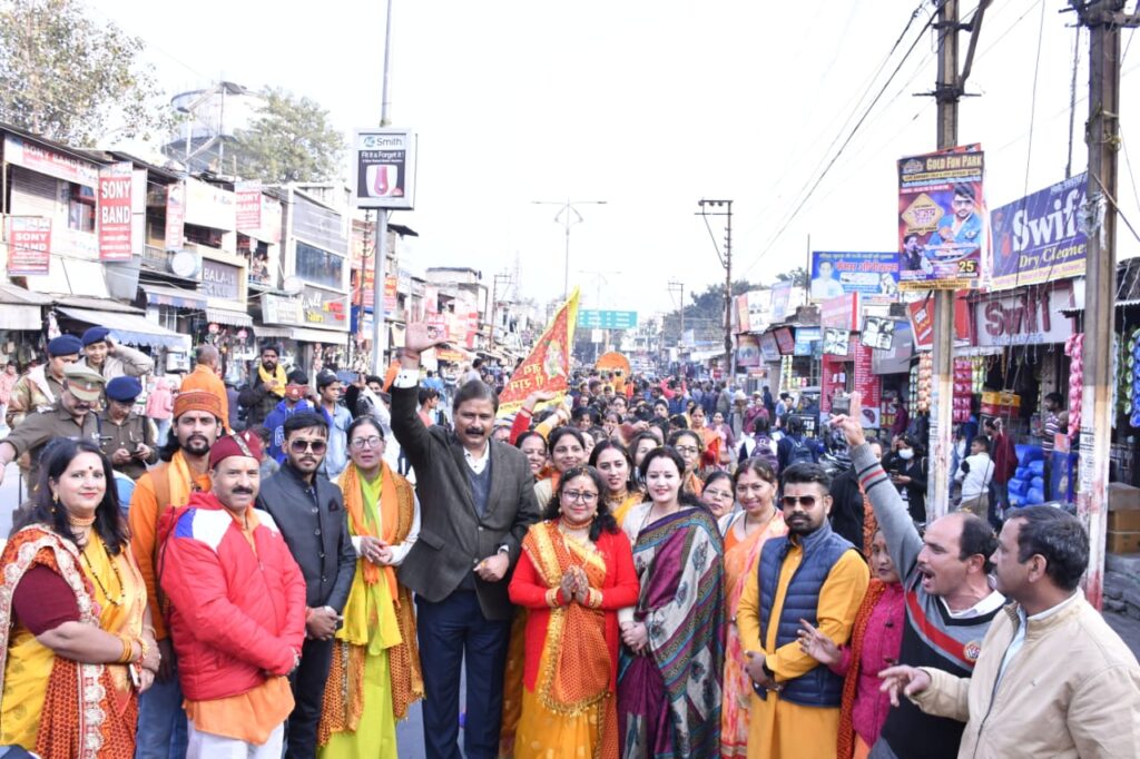 अयोध्या में 22 जनवरी को प्राणप्रतिष्ठा कार्यक्रम किए जाने पर हल्द्वानी में विश्व हिंदू परिषद ने भव्य शोभा यात्रा निकाली।